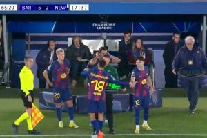 體育資訊03月19日訊 歐冠1/8決賽次回合,巴薩對陣紐卡。66分鐘,巴薩連換三人,坎塞洛、萊萬、費(fèi)爾明被換下,奧爾莫、費(fèi)蘭、18歲埃斯帕特出場。