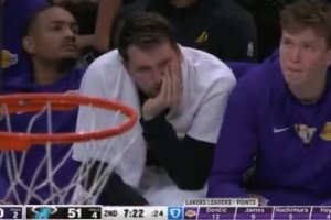 GIF-東契奇替補席托著下巴一臉疲憊