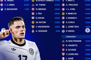 體育資訊3月20日訊 近日,德轉網站更新了新一期德國國家隊球員身價,其中維爾茨以1.1億歐身價高居首位,沃爾特馬德、帕夫洛維奇以6500萬歐位居次席。