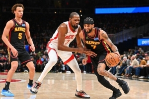 火箭本賽季至今戰績為41勝27負,場均得113.8分,場均失110分。上場比賽,火箭主場116-124再次不敵湖人,申京27分4籃板10助攻,阿門·湯普森26分11籃板4助攻,杜蘭特18分6籃板4助攻,小賈巴里·史密斯18分5籃板4助攻。本賽季火箭主場戰績23勝10負。進入3月份以來,火箭戰績4勝6負。火箭問題依舊突出,年事已高的杜蘭特雖然威脅性依然在線,但傳控支配球并非其所長。申京作為主控,防守存在明顯漏洞。而在杜蘭特遭遇包夾時,其他球員們也不能給予球隊充分的支持。從往績看,含季前賽在內火箭面對老鷹近期5連勝。本場火箭不能出場依然是范弗里特、亞當斯和杰肖恩·泰特三名老傷員。