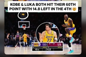 本場比賽,東契奇爆砍60分,而上一位得到60分的湖人球員,還是2016年退役戰(zhàn)的科比。