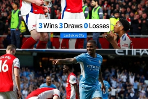 在過去6次對陣曼城的比賽中,阿森納取得3勝3平保持不敗,值得一提的是,在這6場比賽之前的16場比賽中,阿森納對陣曼城僅取得1勝15負的糟糕戰績。