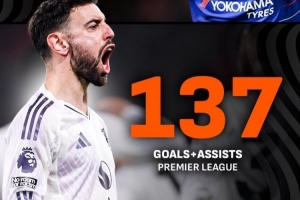 據媒體統計,B費已經在英超參與137粒進球,超越阿扎爾的英超參與進球數量(136球),而且B費還少踢了22場比賽。