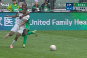 體育資訊03月21日訊 中超第3輪,北京國安vs上海申花。比賽第43分鐘,法比奧前場丟球后反搶,戰術犯規一把拽住馬納法,被馬寧出示黃牌警告。