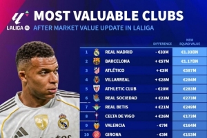 西甲球隊身價變化: