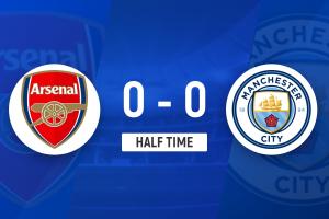 上半場傷停補(bǔ)時(shí)1分鐘,半場結(jié)束,阿森納暫0-0曼城。