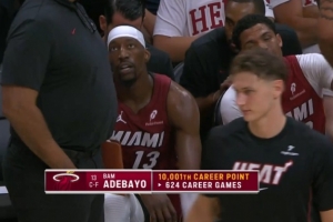 末節(jié)還剩5分鐘,阿德巴約上籃命中,本場(chǎng)比賽個(gè)人砍下第24分;本場(chǎng)比賽之前是9977分,這樣一來(lái),他的生涯總得分來(lái)到10001分,用了624場(chǎng)比賽。