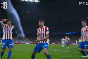 體育資訊03月23日訊 皇馬vs馬競第66分鐘,莫利納世界波,此時比分變?yōu)榛蜀R2-2馬競!