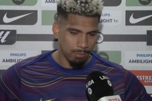 體育資訊3月23日訊 西甲第29輪比賽,阿勞霍破門,巴薩主場(chǎng)1-0擊敗巴列卡諾,賽后阿勞霍接受了媒體的采訪。