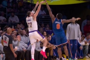 如果唐斯動起來,湖人內線本該吃虧,但斯瑪特多次在布倫森突進后的第一波接應點上完成阻斷,湖人內線壓力都小了。