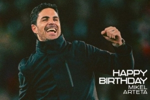 阿森納官推曬出海報,并寫道:“生日快樂,阿爾特塔!”