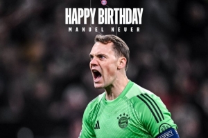 體育資訊3月27日訊 諾伊爾迎來40歲生日,拜仁官方為他慶生。