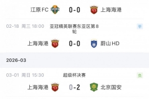 在2月中旬進(jìn)行的亞冠精英聯(lián)賽東亞區(qū)最后兩輪賽事中,海港分別0-0戰(zhàn)平江原FC和蔚山HD。上周的超級杯,海港0-2不敵國安。
