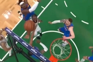 體育資訊3月27日訊 昨日綠軍119-109戰勝雷霆,賽后杰倫·布朗在直播時談到了本場多特對自己上籃的一次粗野防守。