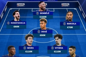 前鋒:克瓦拉茨赫利亞(巴黎,9000萬歐)、登貝萊(巴黎,1億歐)、巴爾科拉(巴黎,7000萬歐)
