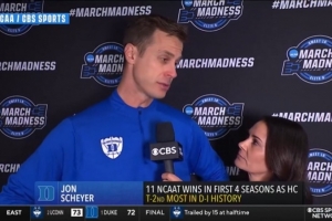 賽后,杜克大學(xué)主教練喬恩·謝耶接受了記者采訪。談到被絕殺出局,他說道:“我無言以對(duì)。我只知道,這些球員不應(yīng)得到這樣的結(jié)局,他們整個(gè)賽季的表現(xiàn)都非常出色,他們不應(yīng)該這樣出局。我沒什么可說的。”