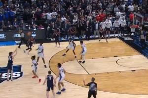 末節最后10秒(杜克72-70康大),杜克后場發球。球隊后衛凱登·布澤爾接球轉身后面對康大雙人包夾,躍起欲傳球被攔下,發生致命失誤。