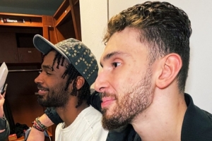 火箭美女記者Vanessa Richardson曬出申京和伊森賽后接受采訪時摟著肩膀的合照,配文寫道:“氛圍,化學反應,肢體語言?!?/p>