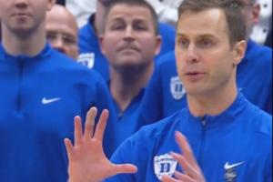 比賽最后時(shí)刻,杜克領(lǐng)先2分并握有球權(quán)后場底線發(fā)球。他在球隊(duì)發(fā)出球后指揮球員向前場推進(jìn)導(dǎo)致最后被搶斷三分絕殺。