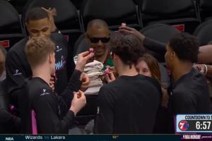 GIF-熱火眾將賽前“聚眾”喝電解質