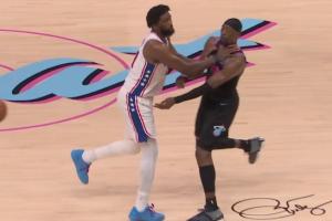 恩比德不慎掐到阿德巴約喉嚨 裁判吹罰為普通犯規