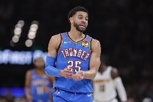 此役雷霆后衛(wèi)阿杰伊·米切爾頻頻沖擊內線,打了36分鐘10投4中,三分1中0、罰球6中6拿到14分2籃板3助攻2搶斷1蓋帽,正負值+5。