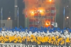本場比賽在波黑的主場進行,在球場附近的建筑物內,熱情的球迷燃放焰火和煙花為國家隊加油助威。