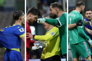主裁不得不介入平息事態,隨著點球大戰結束,波黑晉級世界杯,多納魯馬再次成為焦點,他與對方多名球員再次沖突,博努奇不得不迅速趕來現場將他拉開。