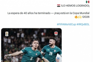 伊拉克時隔40年重返世界杯,伊拉克隊官方社媒用阿拉伯語、英語、西班牙語寫道:“我們做到了,40年的等待結束,伊拉克晉級2026年世界杯!”