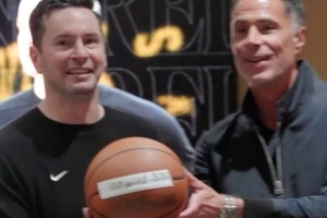 賽后湖人全體祝賀八村塁、東契奇和詹姆斯達成里程碑,而湖人總經(jīng)理佩林卡也為雷迪克準備了執(zhí)教生涯100勝的驚喜,為其送上了紀念籃球,雷迪克的兒子也為其送來祝賀視頻。