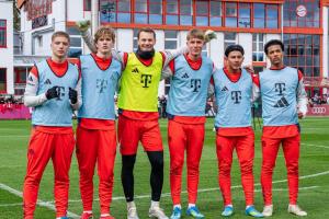 體育資訊4月2日訊 本周,拜仁主帥孔帕尼征召了多達12名青訓營小將參加訓練,隊長諾伊爾在社媒上發布了一張和5名小將合影的照片。《圖片報》對這5名小將進行了介紹。