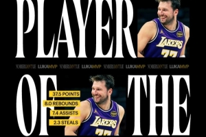 東契奇三月份率領湖人取得15勝2負的戰績,場均爆轟37.5分8.0籃板7.4助攻2.3搶斷,單月轟下600分!
