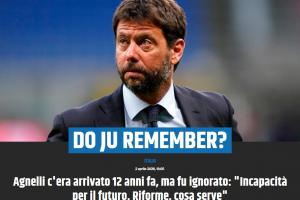 阿涅利:“意甲聯賽必須重新拿回它的領導權,提出一套涵蓋整個意大利足球治理體系的改革方案,以徹底清除如今已令人無法忍受的爭吵不休與透明度缺失。”