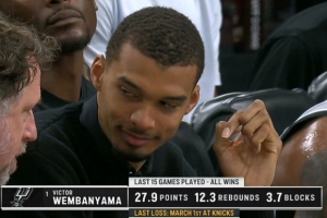 文班上次出戰(zhàn)時失利還是3月2日 當(dāng)時馬刺89-114不敵尼克斯