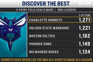 黃蜂主場(chǎng)迎戰(zhàn)步行者,轉(zhuǎn)播方給出本賽季球隊(duì)三分命中總數(shù)Top5: