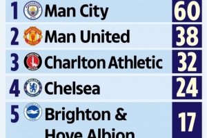 60次攔截遠高于第二名的曼聯(38次),英冠球隊查爾頓以32次位居第三,切爾西(24次)和布萊頓(17次)位列前五。這項針對英格蘭和威爾士警方數據的研究發現,2025年足球比賽中總共發生了386起毒品截獲事件。被繳獲的毒品包括可卡因、大麻、氯胺酮和搖頭丸,但由于43支警隊中只有19支作出了回應,實際數字會高得多。