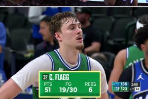 據(jù)統(tǒng)計(jì),弗拉格成為了自2009年詹寧斯后首位砍下50+的新秀,當(dāng)時(shí)代表雄鹿出戰(zhàn)的詹寧斯在09年11月14日對(duì)陣勇士的比賽,狂砍55分!