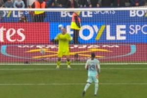 點球大戰第二輪,布倫特福德主罰點球的瓦塔拉出人意料地選擇了勺子點球,但他的勺子點球也出人意料地被阿雷奧拉直接沒收!