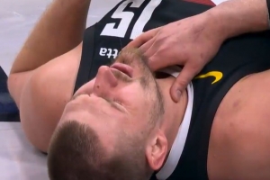 GIF-約基奇脖子位置被凱爾登無意打到