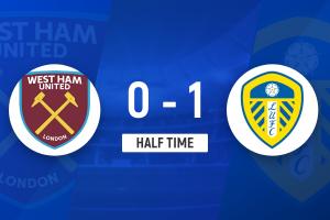上半場比賽結束,西漢姆聯0-1利茲聯。