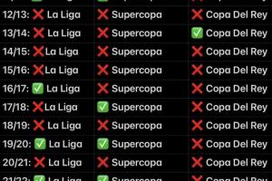25/26賽季,目前皇馬已無緣西超杯,國王杯被阿爾瓦塞特淘汰出局,西甲落后榜首7分。