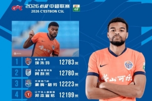 體育資訊4月6日訊 今日,中超聯(lián)賽官方公布了第4輪跑動榜,海牛外援埃朱馬連續(xù)兩輪登頂,本輪他的跑動距離為12783米,英博外援阿利米僅以3米之差列第二位。