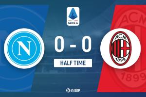 上半場補時1分鐘。半場戰(zhàn)罷,那不勒斯0-0米蘭。