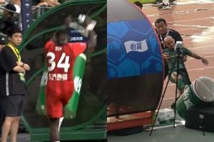 而在2023年中超有過幾乎一樣的案例,2023年6月29日,中超第13輪,上海海港客場2-1擊敗北京國安,比賽第57分鐘,上海海港外援伊薩·卡隆在被替換下場后,用腳踢壞替補席旁的冰桶。之后中國足協開出罰單,卡隆被停賽1場、罰款人民幣1萬元。