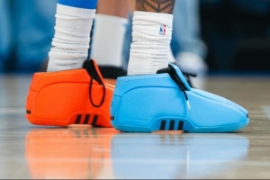 今天缺席比賽的杰倫·威廉姆斯在賽前也進行了常規訓練。而他上腳了一雙Adidas Crazy 2 “OKC” PE。球鞋采用了雷霆球衣配色的藍橙鴛鴦配色。