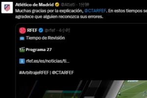 馬競官方賬號轉發了這一評議視頻,并表示:“非常感謝您的解釋。@西班牙裁委會 在如今這個時代,能夠承認錯誤的人是值得稱贊的。”