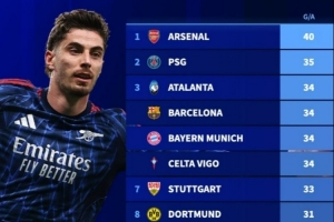 體育資訊4月8日訊 在歐冠淘汰賽首回合阿森納1-0擊敗葡體的比賽中,兩位替補登場的球員連線,馬丁內利助攻哈弗茨破門。德轉也盤點了本賽季五大聯賽球隊在各項賽事由替補球員參與進球榜,具體如下: