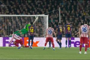 體育資訊04月09日訊 歐冠1/4決賽首回合,巴薩對陣馬競。45分鐘,阿爾瓦雷斯任意球世界波破門,馬競1-0領先巴薩。
