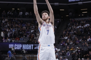 本場比賽,雷霆球員切特發揮出色,進攻端里突外投十分高效,還能造殺傷;防守端能護筐送蓋帽,能預判送搶斷,整體表現十分出色。