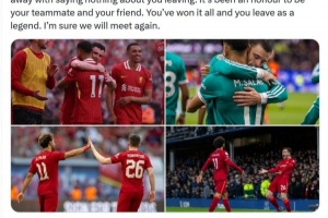 體育資訊4月10日訊 羅伯遜將在本賽季結束后離開利物浦,薩拉赫社媒發文與之告別。